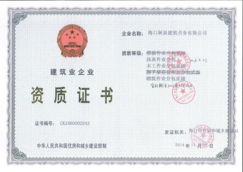海口樹泉建筑勞務(wù)有限公司成立于2011年,公司位于海口,其前身是一家專業(yè)建筑施工隊(duì),自2004年即開始在海南從事建筑勞務(wù)施工。自成立至今,公司已經(jīng)擁有一支科學(xué)管理、質(zhì)量過硬、能打硬仗,搶工期的專業(yè)隊(duì)伍。能獨(dú)立承擔(dān)大中型工業(yè)與民用建筑 、室內(nèi)外裝修、各類機(jī)電設(shè)備安裝工程。代表工程有海口濱海華庭、三亞時代海岸T01/02/04/05棟高層、合肥東海花園二期、陵水富力灣B區(qū)高層、三亞金中海(酒店)、瓊海大印經(jīng)典花園、海口環(huán)球海景大酒店(四星級酒店,在建中)、陵水珍珠大廈(五星酒店)、海口萬達(dá)廣場、美蘭機(jī)場二期。
